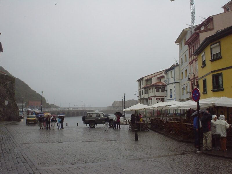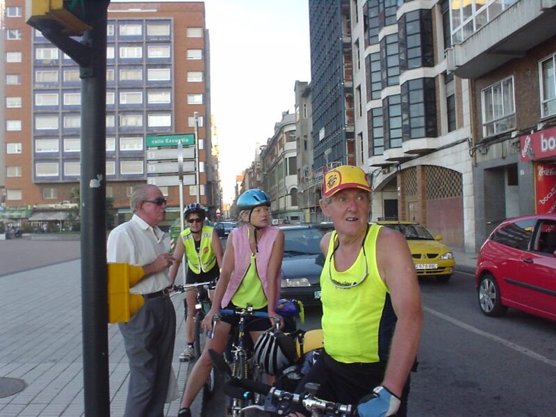 But of course this flat bit did not go on very far, before there was a long high speed descent into yet another river valley at Villaviciosa. Time for coffees and coke (bottles, not white powder!) at a riverside café, before – you guessed it – a very long, very hard climb, back to the high ground. Another 30k and more hills later, we arrived in the early evening at the city port of Gijon. We stopped to ask the locals where the pilgrim hostel was. But could we find this hostel?