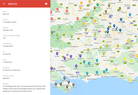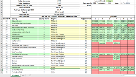 For each region (normally a county) in England, Scotland & Wales six checkpoints have been devised giving 402 places to visit in total. Each checkpoint has a lat/long and a question to answer. The question booklet and an annotated Google map showing the checkpoints is provided on the Cycling UK Website; British Cycle Quest | Cycling UK