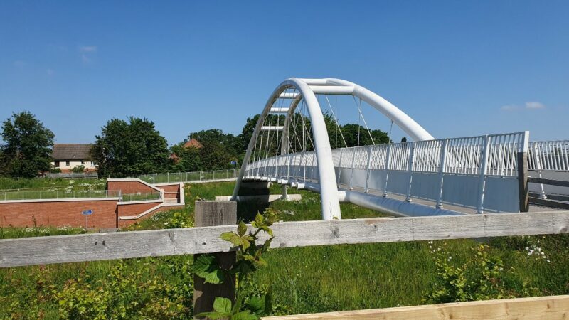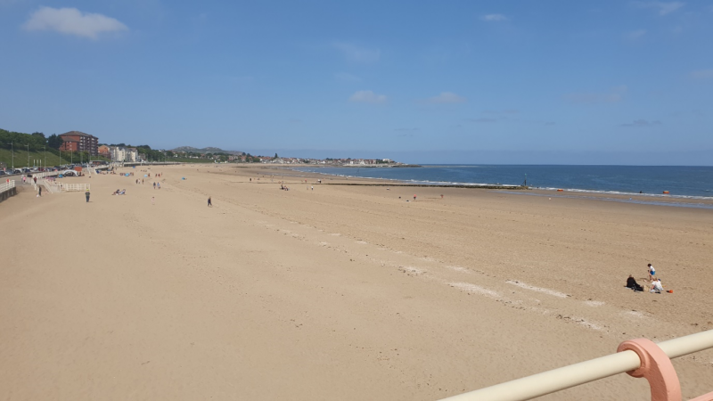 And then onto the disused railway line on a straight route to the border. I had thought about going along the main road but decided that the NCN5 would be a better option although it involved a steep hill out the back of Bagillt. I got a third of the way up when a local offered me a cup of water but I had a steady rhythm at that point. I did stop at a farm gate to take in the view – glad I did as a huge tractor trundled down the hill. Onwards and upwards as I hit the open countryside with sheep littering the road and the heaths. Eventually I arrived at Prestatyn to stay with friends.
