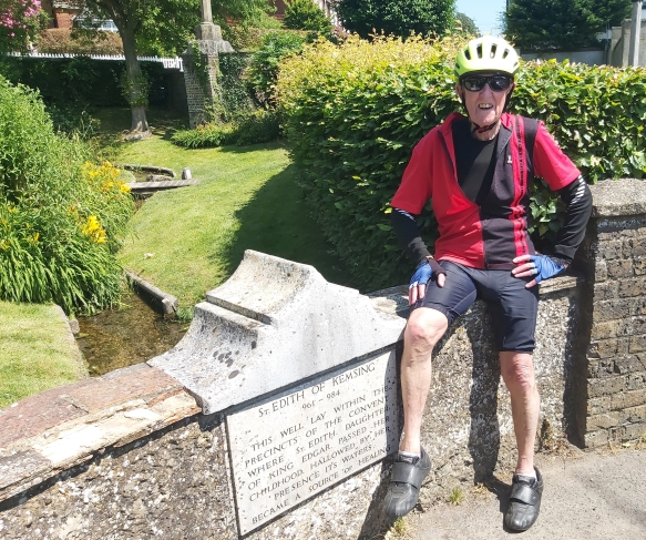 Apparently St. Edith, the daughter of the Anglo Saxon King Edgar I, was born in Kemsing 100 years before William the Conqueror landed on our shores. Legend says that her saintly presence gave the well healing properties. I wonder if a tea or coffee at the cafe next door would now be an aid for cyclists with the common problems of knee and back ache?