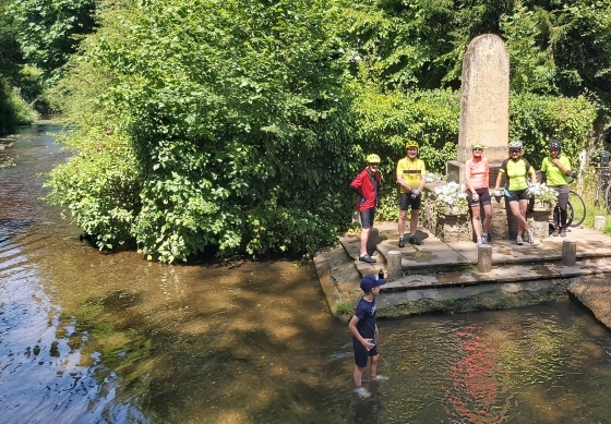 I was expecting the tearoom at Shoreham to be busy but hardly anyone was there. Perhaps it was too hot for cyclists to venture out into this very hilly area. But the tea, cake, and service of the volunteer staff make it a bargain place to visit. So before leaving, a photo to remind us!