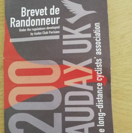 Here, at the “control” we had to find the phone number of Adam and Eve, which we discovered was the village hair dresser’s. We stopped on a bench for a few minutes to fill in all the answers on our Brevet card and have an energy bar. Soon we were joined by the fixed wheeler and the other chap. The fixed wheeler headed off a few minutes ahead of us but we soon passed him as he was walking up a fairly brutal (but short) hill. It was then largely downhill over the last 20km back to the village hall for well-earned tea, a bite to eat, and the registration of our Brevet card.