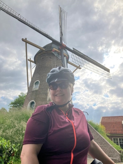 Another 80 miles and we finally arrive in Amsterdam – my quads were pretty solid and took a while to warm up that morning, and stopping for a break it was hard to get going again – but we persevered. It was amazing to get to Amsterdam and finish at a historic windmill with family and friends there to greet us at the end of the day.