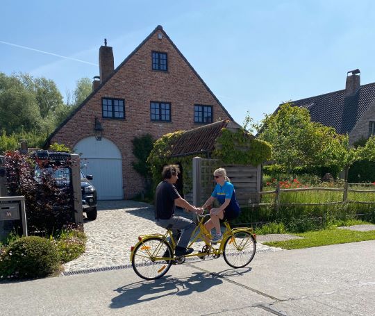 The ferry ride to Dunkirk was a welcome break and then we rode 60 miles through France and Belgium to get to Bruges for the evening.  That first day was tough, there was a strong head wind and a lot of cycling down a canal which felt a bit like Groundhog Day as it just kept blowing, but we made it and stayed in a great cycle themed hotel in Bruges.