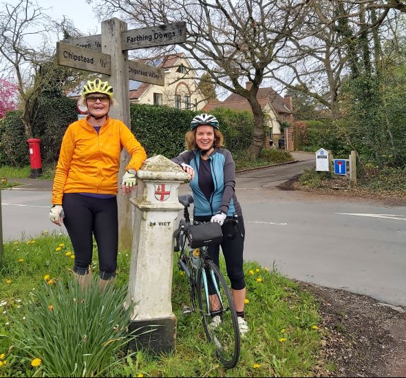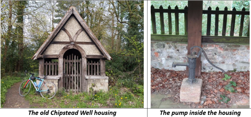 4. From there we did a left turn and followed the yellow road past a pub and telephone box (bottom right of Grid Square 27/57) and over the next X rd to Grid Ref 276/566. Here but not shown on the map, is the old village pump to a well. No running tap water in days past! And no cosy coffee or tea shops, so our Anerley cyclists would know where all the village wells/pumps where to refill their water bottles!