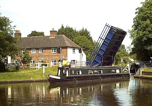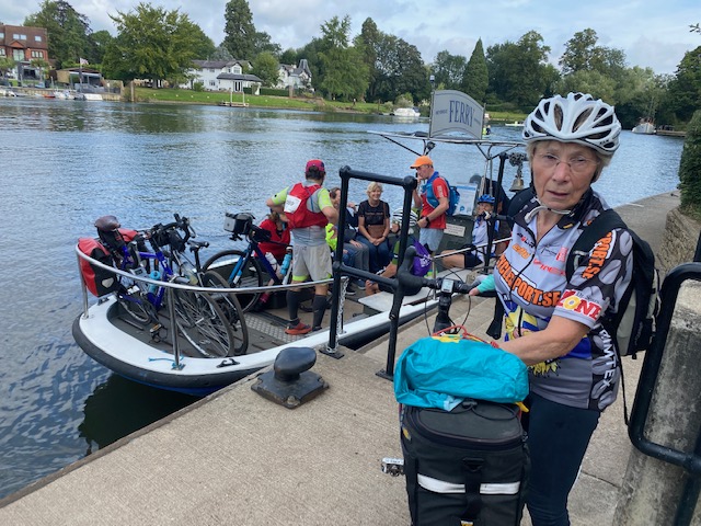 We took the foot ferry across the river at Walton to our first stop at The Ferry Coffee Shop, Shepperton, which did delicious iced peach tea (and a quick repair to Denise’s light bracket!) We then headed near Virginia Water (closed to cyclists), Ascot and eventually Aldermaston where we joined the Kennet & Avon canal path. Access to the tow path is via this road over the lifting bridge!