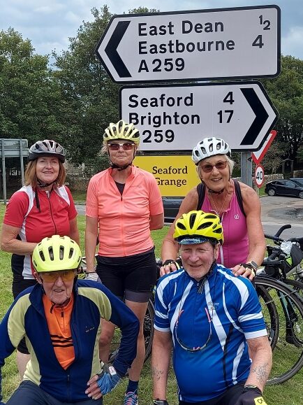 After the torrential rain and gale force winds of our first day at Newhaven (see https://archive.anerleybc.org/stormy-south-downs-and-sussex-coast/) the next day was blue sky and sunshine. Our advance planning had been to cycle to Seaford, head inland to see the Long Man of Wilmington, then return to the coast and cycle on to Eastbourne via Beachy Head. The return circuit was to be via Polegate. Although we had done part of this on the previous day’s wet weather hike to Alfriston, the bike route was different from that of the hike. Plus we did want to see the famous, Long Man of Wilmington!