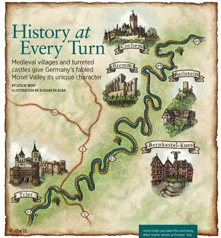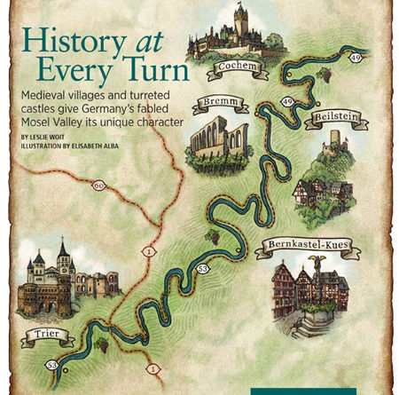 After Piesporter wine, the next most famous place for wine on the Mosel is Zell. It’s local wine is named “Schwarze Katz”, in English “Black Cat”. When we arrived at Zell it was festival time and the road thru the town was closed for the carnival floats. All of course decked out with wine themes. Here a rather large bunch of grapes!