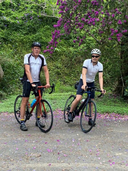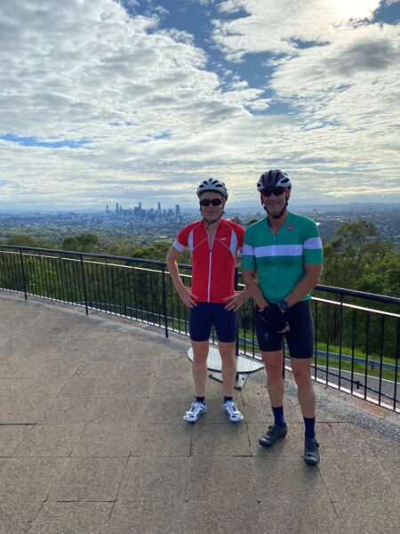 The first ride we planned was called the River Loop which is almost entirely on purpose built cycle paths and does what it says on the tin – loops along the River Brisbane. We had arranged to meet up with an old colleague of mine, Adrian, who emigrated to Australia 18 years ago. We were up at 5am to be met by drizzly grey weather. Martin greeted me with a tea and said “Your mate won’t turn up in this!” as he glanced out at the gloom outside. “No, he will,” I insisted. Reluctantly Martin agreed to ride and we were soon at the Botanical Gardens, the agreed meeting point for my friend. No show. After a couple of messages, it transpired that he had seen the weather and thought no one would cycle in these conditions. He had become a true Aussie! To be honest, when most days are sunny and dry, you can afford to skip the wet ones and keep your bike nice and clean! We continued with the ride and enjoyed the amazing cycling infrastructure – cycle paths the size of roads built on stilts above the river and purpose-built cycling bridges over the river that were completely separated from the busy traffic on the roads. Brilliant! Very popular with walkers, runners and cyclists although maybe a little less so on this particular morning. As we continued it got a little wetter. Luckily, I had a light weight jacket but Martin was pretty wet and cold by the time we finished. As he left for work, he suggested I might like to clean the bikes. Recompense, I guess.