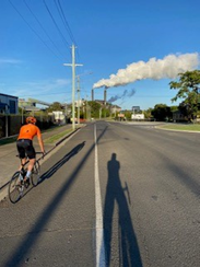 We took a left in a residential area, cycled to the end of a Cul-de-Sac and did a U-turn. Curious, I thought, surely they know these roads. I put it down to a misunderstanding between the group and we returned to the road we had just been on and then took the next left. Ah, I suppose all these residential roads look very similar we must have just turned off too early. Enjoying a rare downhill and regaining my position at the back of the peloton I heard the squeal of brakes and looked up to see we were at the end of another Cul-de -Sac and once again were turning round back up the hill. Then it dawned on me; we were deliberately looking for any hill however short and however pointless. I started to find this surprisingly challenging, as instead of a steady plod back up the hill they seemed to accelerate up the hill often standing to get enough power! These short sharp shocks always injected a gap that I had struggled to close. Finally, we did a long descent to the wide Bernett River. Here we had a short break to get our breath back while they told me about the devastating flood here. See the You Tube video – The story of the 2013 Bundaberg Flood Disaster : https://www.youtube.com/watch?v=23RW3SnYoPc