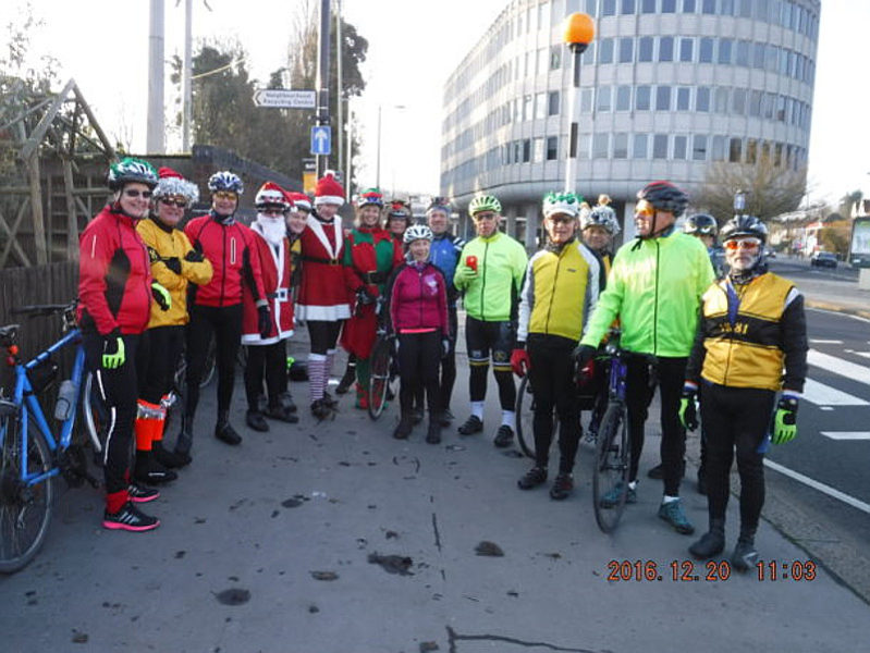 What a great turnout on Tuesday as a huge gang of Santas, elves and reindeer gathered for the ride to Polehill Garden Centre.