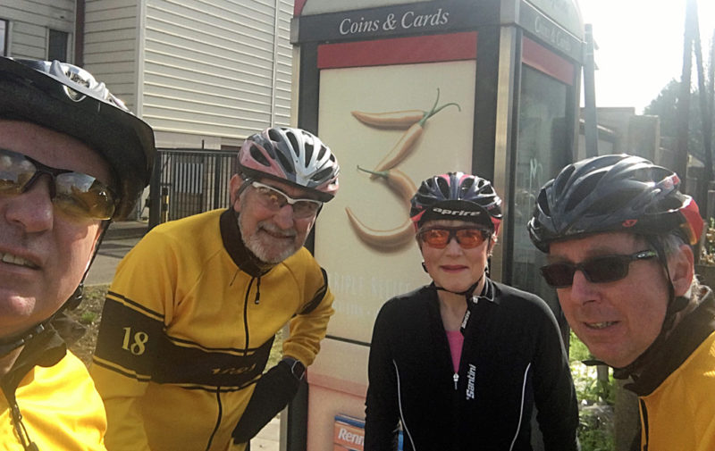 Four of us met at the phone box Karen, Roger, Graham and Pete. It was still a little chilly so it was a 50 – 50 split between shorts and longs, not such a difficult decision for this coming weekend.