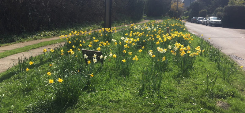 Blue skies along the Pilgrims’ way to Shoreham air museum and daffodils in full bloom.