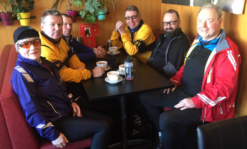 Seven of us at the start with two more to meet us at the Red Rum cafe Linfield provided a good mix of regular Saturday riders plus some new faces.
