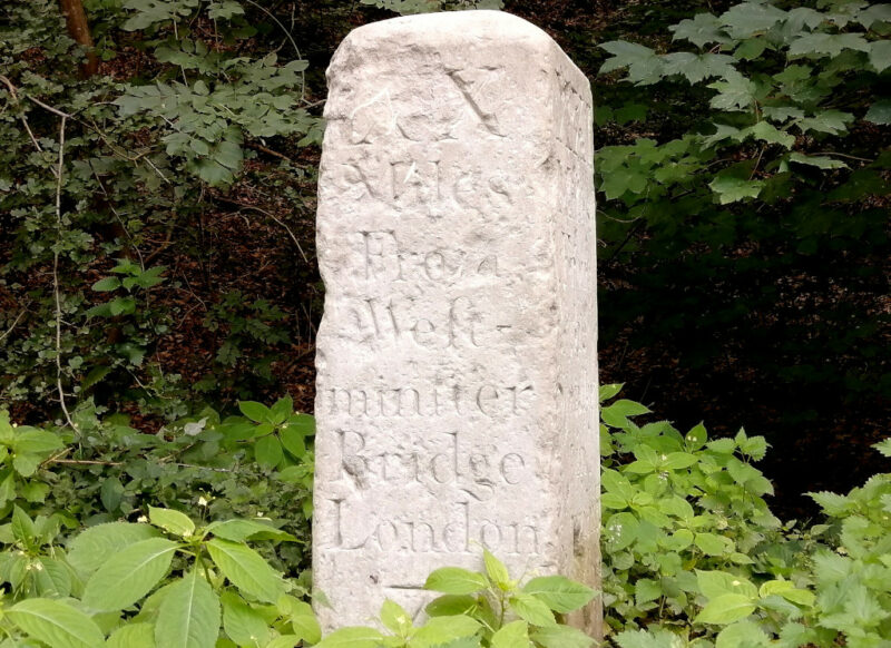 Wayside stones. This you have passed many, many times going or returning via Marden Park. It’s opposite the junction of the bottom of Church Lane in Old Godstone where we normally take a left towards the A22. According to Des the Romans built the road over Tilburstow Hill – ignoring the contours to find the shortest route. Well they didn’t have bicycles and when the landed gentry started commuting to London with horse drawn carriages – they felt the same way about hills. So a new flat road around Tilburstow was built with milestones showing, in this case, the mileage to Westminster Bridge. In a nod to the Romans you need to decipher LXMVI characters to work out of you are going to be late.