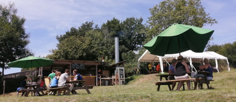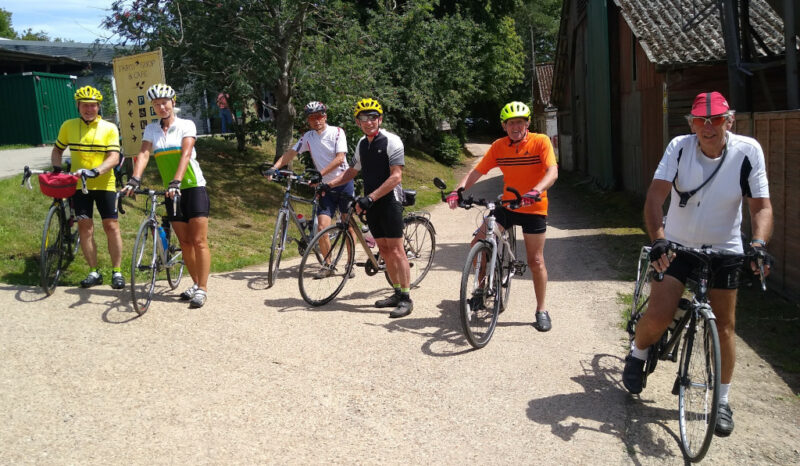 This stone in Dormansland marks Longitude zero. Ansd so we proceeded east upto East Grinstead. Des’ preferred oute had been blocked by a collision so we took the railway trail to Tablehurst Farm. Riki took a bit of a tumble on final approach. Another socially distanced cafe …