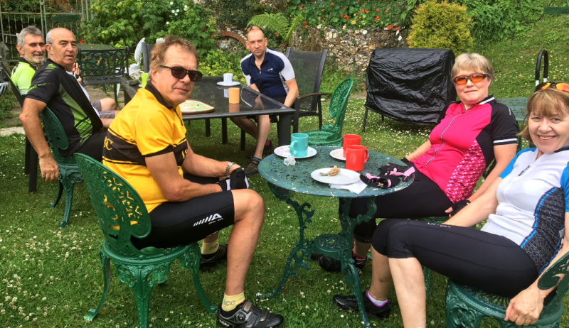 Seven of us at the start were joined soon after by Jeremy so eight riders headed out to Shoreham air museum one of our favourite tea stops.