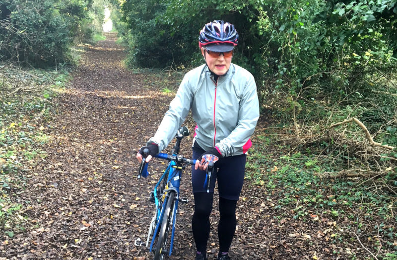 Our route included a brief spell on a bridle path cutting through to Woodmansterne. It was about 300 yards long and probably rideable on road bikes in the summer but as it was covered with fallen leaves and twigs we decided to walk it on this occasion to avoid puncture risk