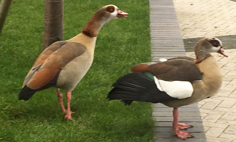 Shortly after and further along the Thames path we encountered a couple of friendly geese, see photo. An exhaustive check of geese identification websites eventually identified them as Egyptian Geese and unlike the Mallard, in this instance it is the female that has the more colourful plumage.
