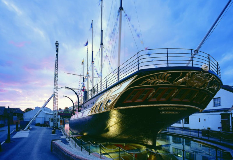 The restoration works after the Cutty Sark fire includes a fully surrounding glass structure around the hull which ruins the smooth lines of the hull and hides much of the ship. Compare that with the glass surrounding SS Great Britain in Bristol which creates the effects of the ship floating in water whilst also providing a dry and enclosed visitor area below.