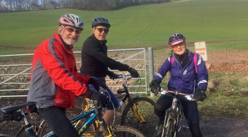 Overnight rain made the going very muddy and it’s surprising how heavy a bike can get when it’s tyres are caked in mud. Our route took us up Old Lodge Lane and then through woods to Caterham Drive and more bridlepaths to Old Coulsdon. Then we had a fast downhill to the bottom of Happy Valley where instead of taking the Ditches road up Farthing Down we took a fabulous off road path through the valley and up again through woods to the ca rpark on Farthing Down.