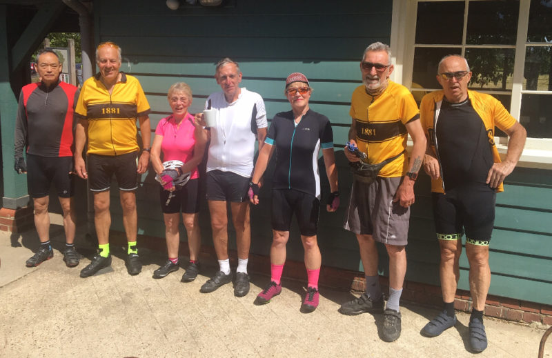 The rest of us Sandra, Bob, Graham, Miles, Ian and Pete took a less ambitious route back via Boxhill, Tattenham Corner and down Holly Lane to complete a return trip of a mere 40 miles.