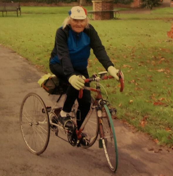 Sian Charlton, died aged 87. Sian was one of the longest serving members, probably joined in 80’s. She was one of our champion tricyclists. Sian still holds all the Club Ladies Tricycle Records: 10, 25, 50, 100 miles, 12 and 24 hours (316 miles), all set in 1990 aged 57. She was also until recently General Secretary of “The Fellowship of Cycling”. People may remember her banging the spoon and cross toasting at Club Dinners.