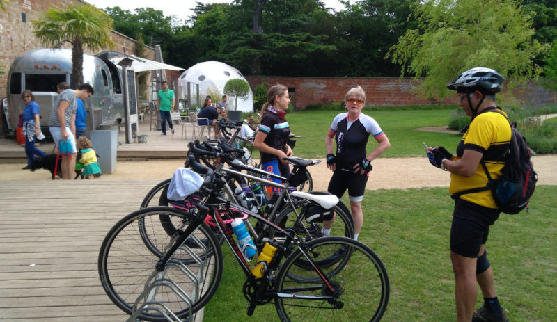 A real summer’s day with a dozen of us or so heading out to Cobham for tea. A pause in Ashtead Park (above) for the front to await the back who had taken a wrong turn – or more accurately missed a turn – to catch up. Setting a precedent for the day.