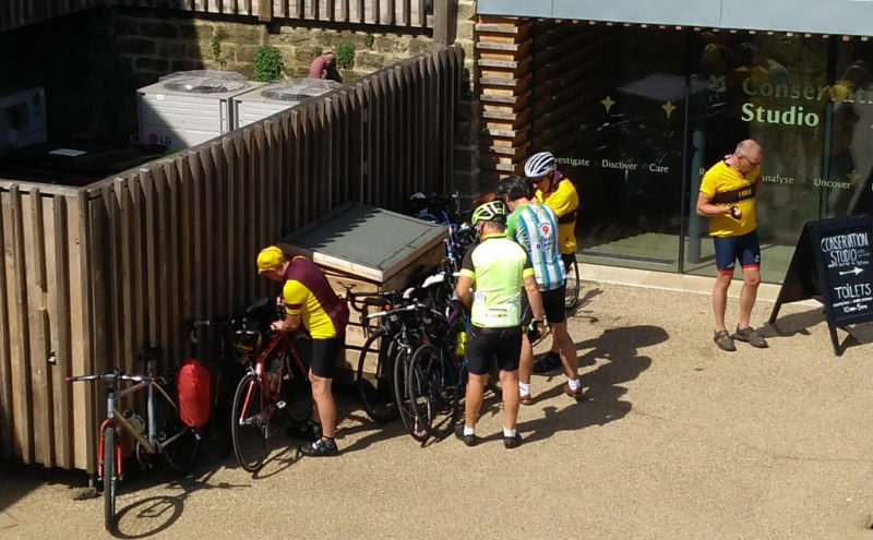 The National Trust Cafe had us up in the parapets. Not to mention the local population of wasps – or is it the same swarm that follows Jim everywhere to remind him of the midges he left behind in Scotland?
