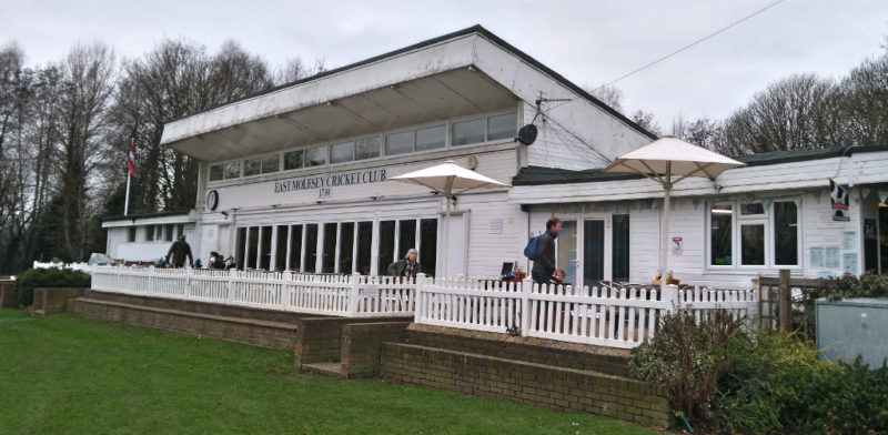 Mark H was at the helm with Tom V riding shot-gun as seven of us headed westward towards stokebrokerland to the Thames-side destination of the East Moseley Cricket Club. A speedy an easy ride via Epsom and Oxshott with a natty swerve to avoid that awful A3 roundabout on the Esher by-pass.