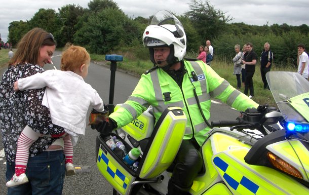 Reeling from the posh Surrey pricing of £4.65 for a pint and a packet of crisps we were joined by more and more cyclists. indeed more and more people in cars, on Ducattis and on foot. For, fortuitously, at 1.30pm the Tour of Britain was scheduled to turn at the junction just 100 yards up the road from the pub. We were on time but the these racing folk were late. We got colder …