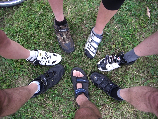Nevertheless our Captain decided a double punishment for daring to enjoy an elongated stop. We followed the ToB up Ranmore Common. Andy decidely faster and more relaxed then his first outing on the old hybrid. If that was not enough the fast descent was followed by a potter up Box Hill to admire the re-appearance of speed bumps and disappearance of the Olympic Rings. Tea and Ice Cream was taken and the correct colour of valve caps was argued. Hence back down Chipstead Valley for a tad over 50 miles on the day.