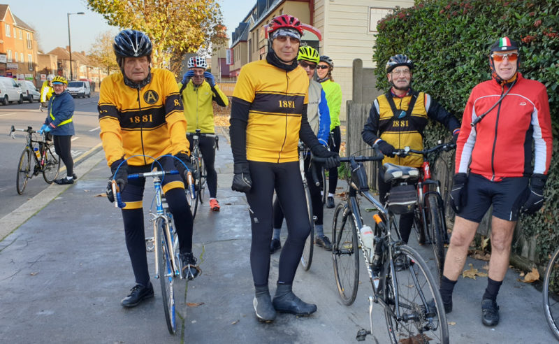 I doubt we will be al-fresco again in 2018. And that was the last of the warmth. The standard ride through Four Elms and Hurst Green reminded us winter was a coming. The last of the sun was glimpsed on the hills around Marden Park and the gloom of Purley was a reminder to some to REMEMBER TO BRING LIGHTS NEXT TIME.
