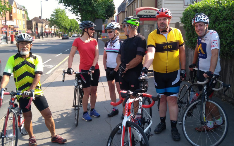 The magnificent Seven set off into the already heat of the day including an old club member Yoshi who now lives back in Japan but being over in Europe came out for a Sunday Ride.