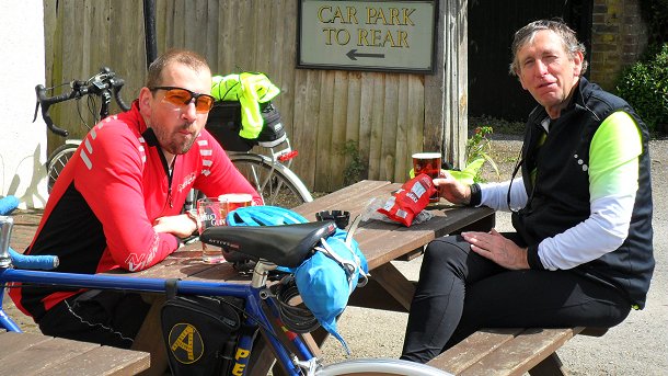 The clouds were gathering from the west leaving the tricky choice – pub stop or a dash home? Ewa took this shot leaving Jeremy, (an out of sight) Graham and myself to do our Canute-like thingy …