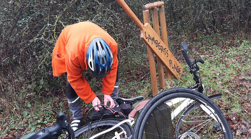We did the A25/Marden Park return. I was running short of my 50 mile target for the day so Tom Tom took me round some of Croydon’s back doubles to make up the distance. It wasn’t quite enough so I had to do another diversion only to discover I had a rather fast ‘slow’ on the rear with only a mile to do. Having left my crisp packet in the pub I had to do four re-pumps to get home.