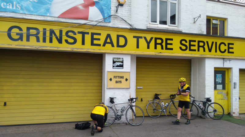 Around a dozen of us set off on a 60 miler to Pooh Corner at Hartfield. We took a traditional route to East Grinstead where Tom went a bit soft in his rear. A usefully named forecourt in appropriate colours (above) provided a refuge to get himself pumped up for more action.