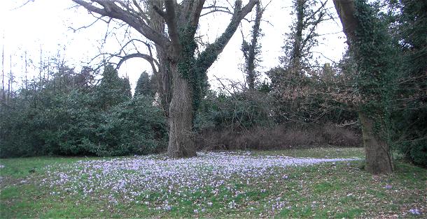 Winter turned into spring. The crocuses (croci?) turned the earth purply blue and seven of us set out into the blazing morn making it eight picking up Graham in Kenley and so up Marden Park with the grass glowing from the low slung sun. We took a breather to admire the view …