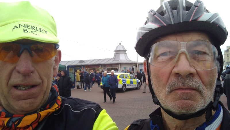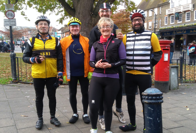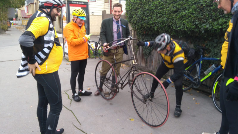 Almost a new recruit. This gentleman stopped to greet us at our early 8am start. Original with solid tyres with only LED lighting as a compromise with the modern era. Then off he went. We started about 15 minutes later and caught him on a big hill south of Handcross. So big he had to walk it. But he rolled into Brighton only minutes after we did – so a well deserved chapeau!