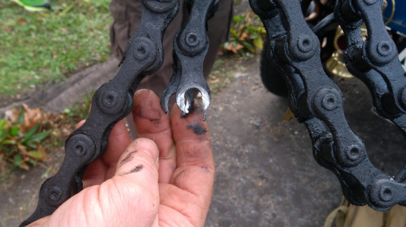 This is the broken chain. The driver said it was 80 years old and the links are just wearing out. He had a spare in the boot. That wasn’t the end of the chain nightmare. More to come!