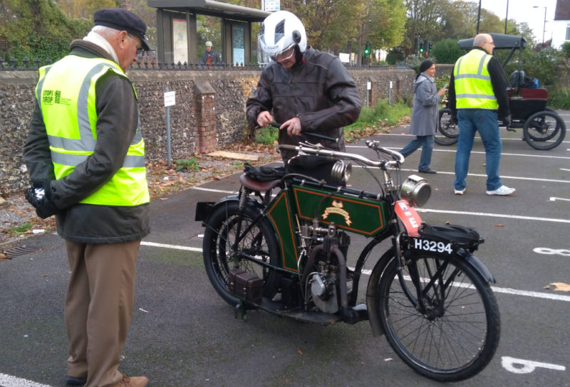 This Deadnought motorcycle was at the pit stop in Purley. He didn’t do so well. He was was still stuck in Staplefield surrounded by mechanics on our way back!