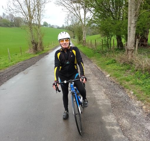We dropped down into Lingfield before climbing up towards Crowhurst. I stopped by the pond to video the club on the way up the climb in light rain. By the time I caught up, Barrie was off the front being chased by Karen & Paul. I caught them just before the Brickmakers Arms pub & traffic lights near Miles Lane. Barrie was still 100 metres up the road so I set about closing the gap and reached him on the A22, followed by Karen.