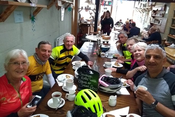 Last week’s three Anerley riders had expanded to seven for this week’s relaxed weekend ride to “The Street” tearoom at Charlwood. You should be able to recognise the smiling faces, tucking into their slices of cream cake or other high calorie delights.