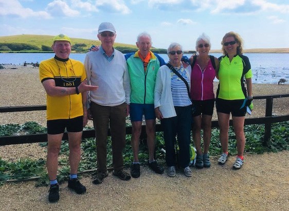 Note the gent ahead of Sue. The one wearing a baseball cap and holding a shopping bag. After the feeding, and a very interesting talk by the Swan Keepers had finished, an elderly lady came up to TomTom. Having seen his Anerley gilet, she asked if it was Anerley in south London. Having been told that it was, she informed us that her husband had been a member of our bike club in the 1950s. She then walked off, only to return with the gent in the baseball cap, who was introduced to us as Stan Hutson.
