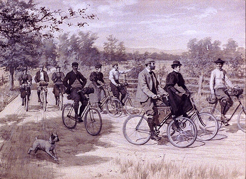 A member of the Club, with a vivid imagination, S. F. Edge by name, had been up in those regions and brought back reports of a wonderful land of promise, an ideal country where roads were always smooth, and level, where you simply had to sit softly on your saddle and glide along all day from one famous roadside hotel to another, where food was always ready on groaning tables, and the delight of the proprietors at being visited by cyclists was such that they made merely nominal charges for the plethora of good things they pressed upon their delighted guests.