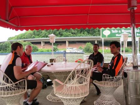 My route guide showed it to be 19k to Schweich where we were to recross the river to the south side. A convenient place for a very late elevenses. Even after the huge free breakfast, the growing lads, like Oliver Twists, were crying out for more! So we sat at a riverside cafe to eat, drink and watch the world go by.