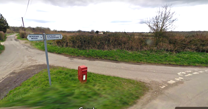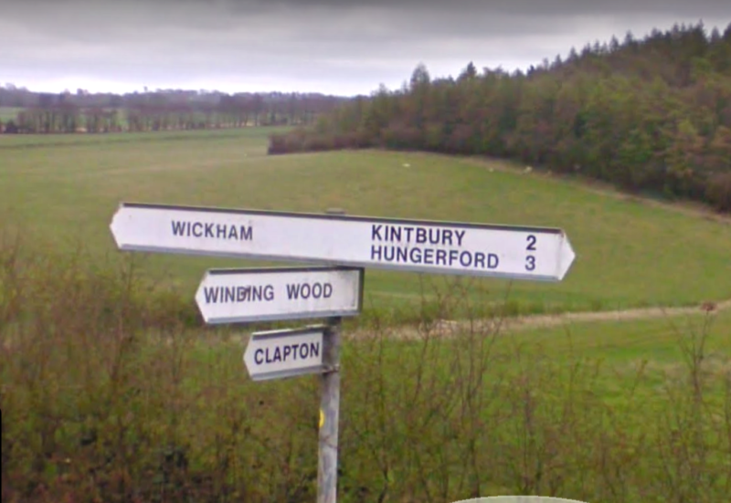 We were now into the depth of the Berkshire countryside, narrow, twisting lanes with the odd farm house or little hamlet. We now had to find the next Control Point which was at a T junction where we had to turn left to Wickham. Here we had to find the distance to Hungerford. It was clearly not the first T, or the second shown below. This showed the distance to Hungerford, but to the left Winding Wood