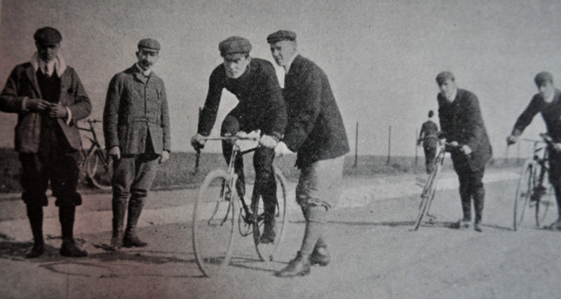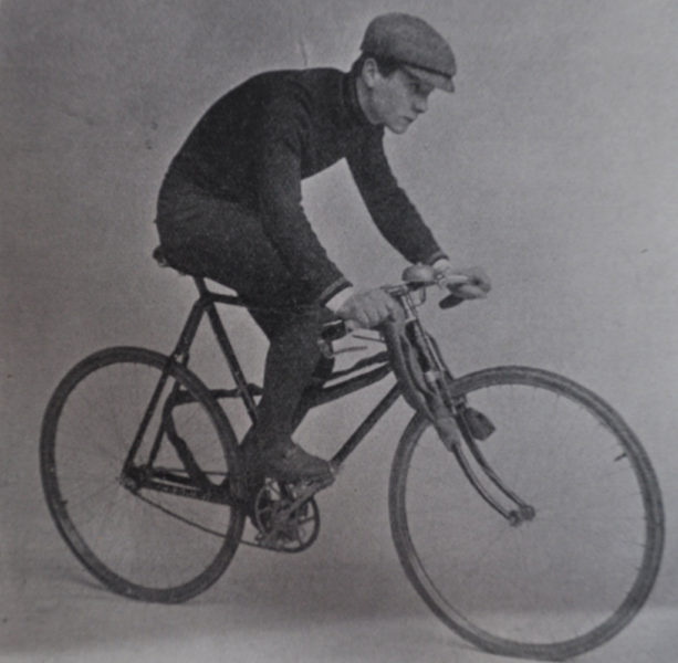 He broke many records in 1900 he rode 323 miles in 24 hours and 100 miles in 5 hours 31 minutes. All on fixed gear and dirt roads.