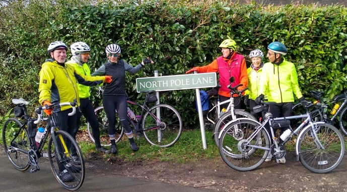 Of note, we had a special guest rider. Moira had flown over from her home in Canada to come to the Anerley Club Dinner, and in view of deep snow back home, a bike ride on this beautiful sunny morning!