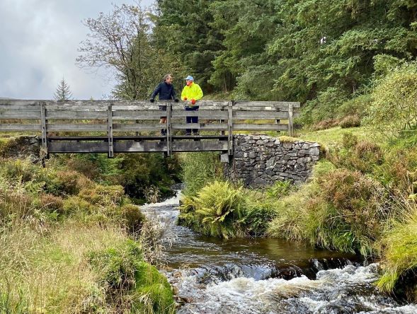 You will note that the above Walk/Run event starts and finishes at Clun. It finishes after 45 miles on the coast at Aberystwyth, passing on it’s way through the Hafren Forest. It is here, on the Plynlimon Massive, that a forest track climbs up to the source of Afon Hafren, the longest river in the UK. You may wonder why you have never heard of this river before. Well you have, except that we English know this Welsh river as as the River Severn! I had never heard of the the Hafren Forest or for that matter, Clun before, but my son and his wife have run/walked this event on more than one occasion. Hence we had a good guide on the continuation of our day out after the earlier short hike along part of the Kerry (Ceri in Welsh) Ridgeway. But whereas my son and wife continued running along the ridgeway, we went back to our car to drive to the Hafren Forest, much of the route was along cycle routes.